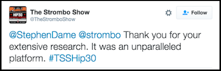 George's show was kind enough to give me a mention after their incredible Hip 30 broadcast: